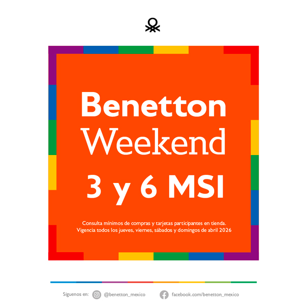 31. La Gift Card puede ser utilizada única y exclusivamente en tiendas Benetton ubicadas en la República Mexicana. No aplica en Outlets.